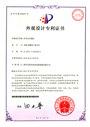 礦用LED圓燈專利證書(shū)