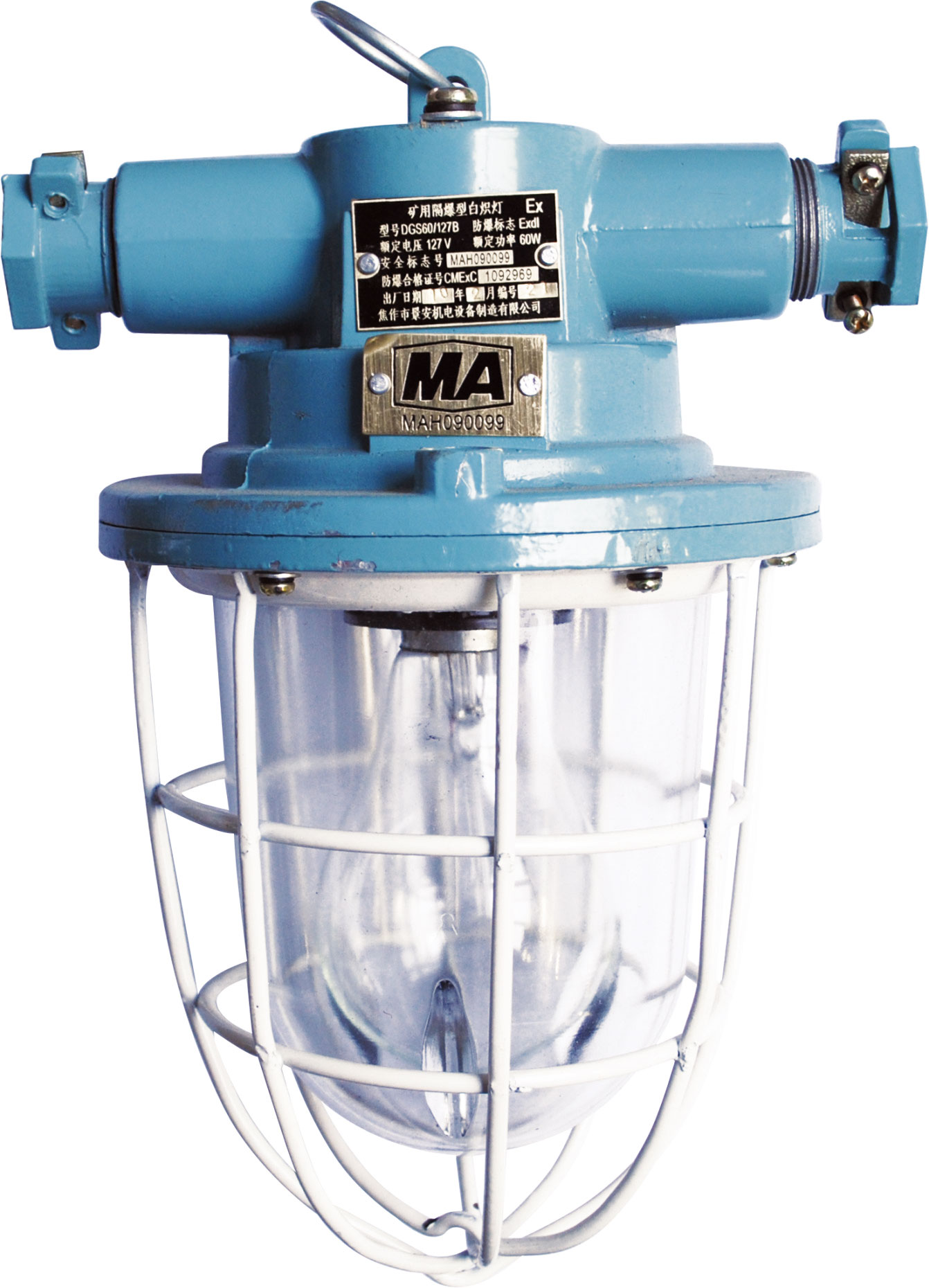 DGS60/127B礦用隔爆型白熾燈(以下簡稱60W白熾燈)。適用于具有瓦斯及煤塵爆炸危險的礦井中,可供車場及機電峒室、中心變電所、大巷運輸、泵房等場所供照明之用。